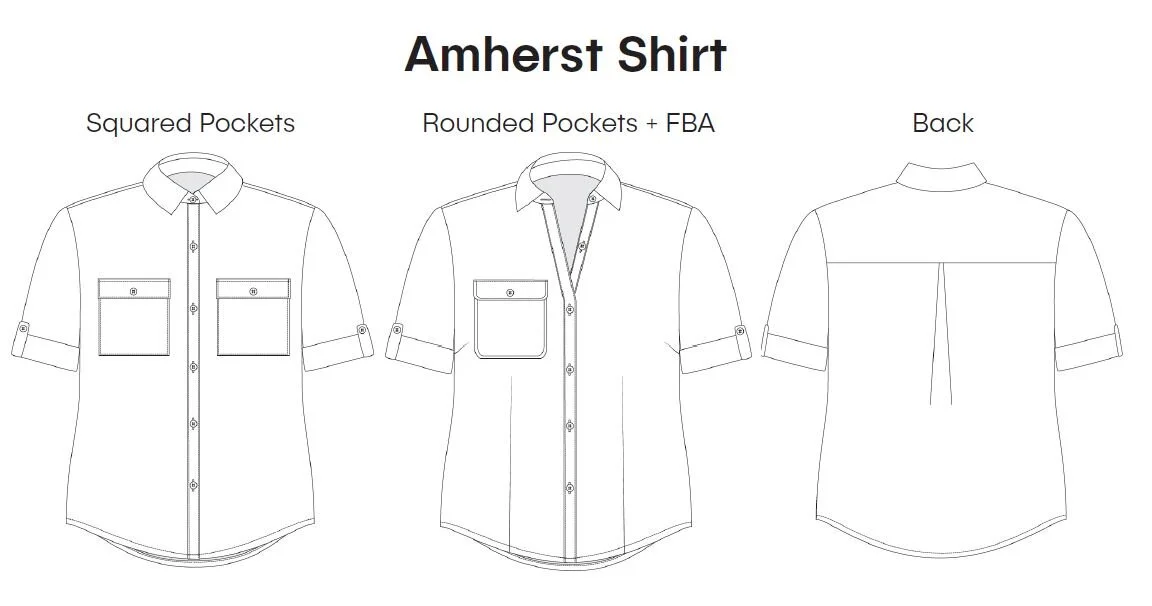 I know you’re going to be asking why you need Amherst. You might already own Cheyenne (also designed by Hey June), Archer, or another classic collared shirt pattern. I can only speak for Cheyenne as I own it and have made several versions. (You could say she’s my tried and true button up shirt and I haven’t needed to stray.) Cheyenne was drafted and graded in 7 sizes, XS (32” bust) to 2X (44” bust) while Amherst covers 13 sizes, 0 (33” full bust) to 24 (53” full bust) with a full bust adjusted front included. There’s likely some more specific drafting differences, but I’m not an expert on that by any means and therefore cannot comment. There are subtle, style differences one could modify another pattern to achieve (pockets, sleeve tab). Amherst has a more relaxed shape with an ever so slight drop to the shoulder. But, the most significant, in my mind, AND FUN (my mo, remember?) difference is the sleeve. Amherst has a unique, grown-on sleeve cuff which completely blew my mind and is rather cool to construct. As a process sewer, I live for trying new techniques and styles.